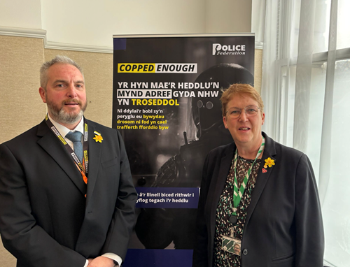 He was joined by colleagues from the three other Welsh Federation branches, Gwent chair Matthew Candy, North Wales conduct and performance lead Liz Owen, and South Wales chair Phil Walker, as well as PFEW Welsh co-lead Leigh Godfrey and deputy national chair Brian Booth.