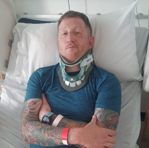“I was taken by ambulance to Nottingham Queens Hospital, where I was given the terrifying news that I had broken my C6 vertebrae near the base of my neck.