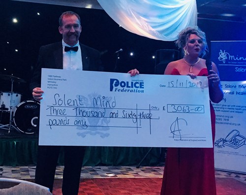 The evening saw the culmination of the branch’s fundraising efforts with a grand raffle in aid of their chosen charity – SolentMIND and a presentation of a cheque to the value of £3060!