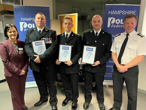 Hampshire Police Federation Chair Zoë Wakefield said: “Robert, James and James showed immense bravery as they faced the real threat of harm from an armed man, as well as from a dangerous house fire.