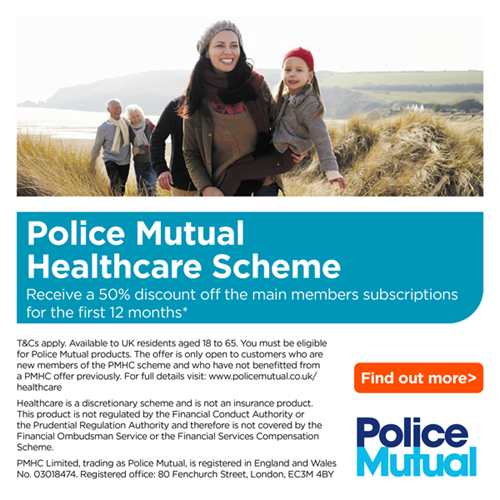 *T&Cs apply. Available to UK residents aged 18 to 65. You must be eligible for Police Mutual products. The offer is only open to customers who are new members of the PMHC scheme and who have not benefitted from a PMHC offer previously. For full details or to apply visit click here