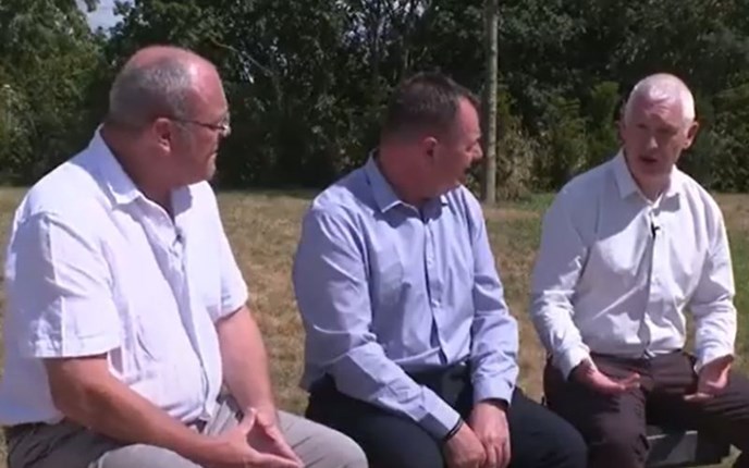 Bryn (right) chats with Adrian (left) and David (centre) at the UK Police Memorial (BBC)