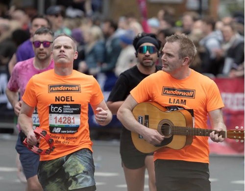 And as if completing 26.2 miles wasn’t enough, Tom ran the entire route dressed as Noel Gallagher alongside his brother Joe – or 'Liam' – with the pair serenading onlookers with their guitar and tambourine along the way.