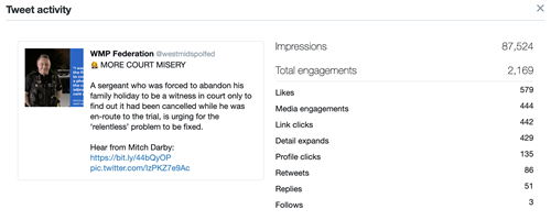 The campaign quickly propelled, with a Tweet posted by West Midlands Police Federation highlighting Jase's ‘court misery’ seen by more than 87,000 people.