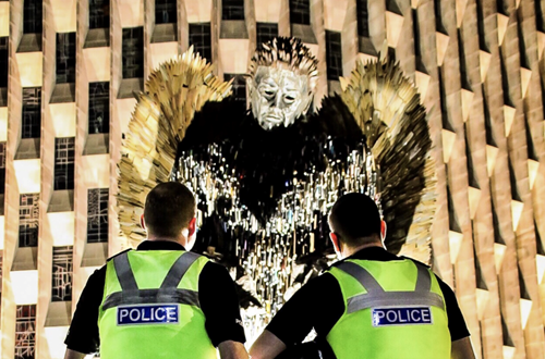 Standing 27ft tall, weighing 3.5 tones and made up of 100,000 knives received from 43 UK police forces, the Knife Angel is in Gallery Square in Walsall until 28 December.